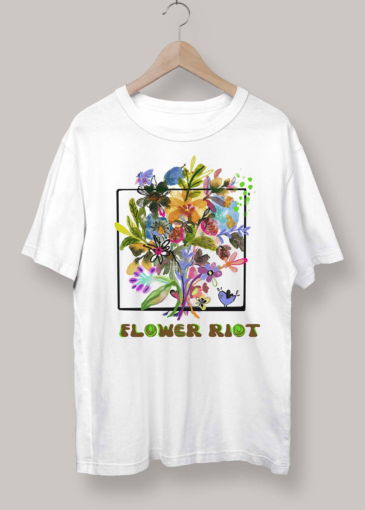 This is a 100% cotton t-shirt with a hand painted illustration of ‘Flower Riot’ of Wild Flowers.