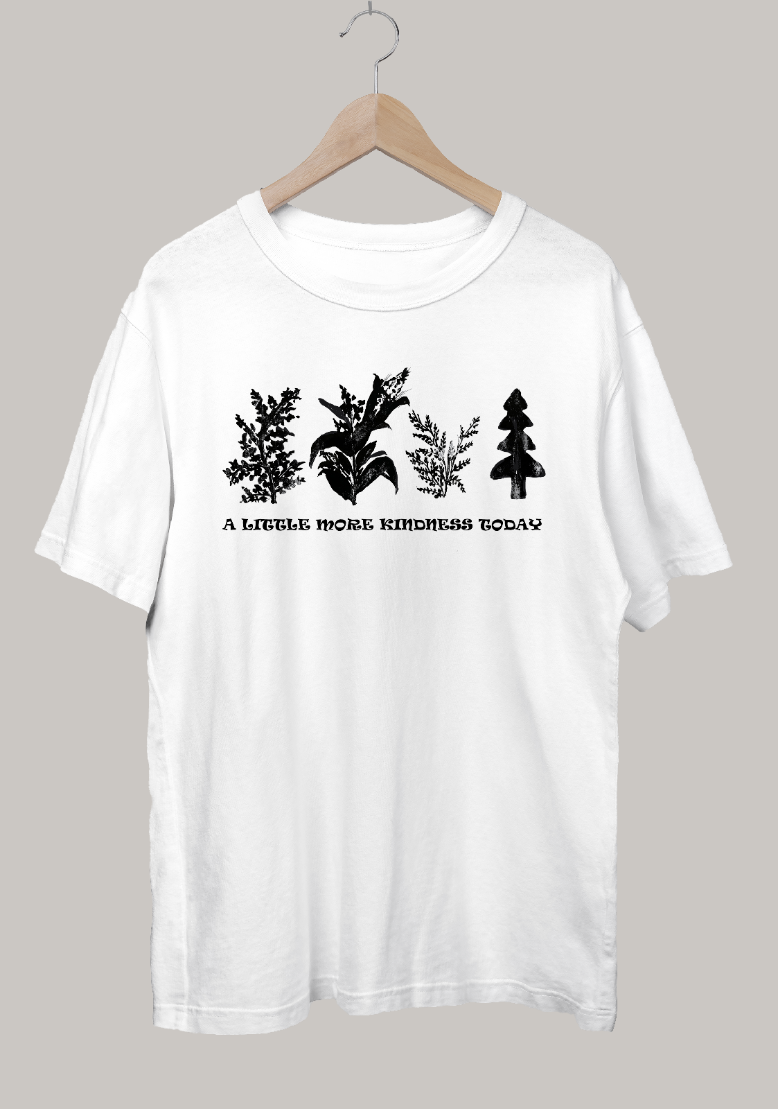 This is a 100% cotton t-shirt with a hand painted illustration of ‘ A Little More Kindness Today’.